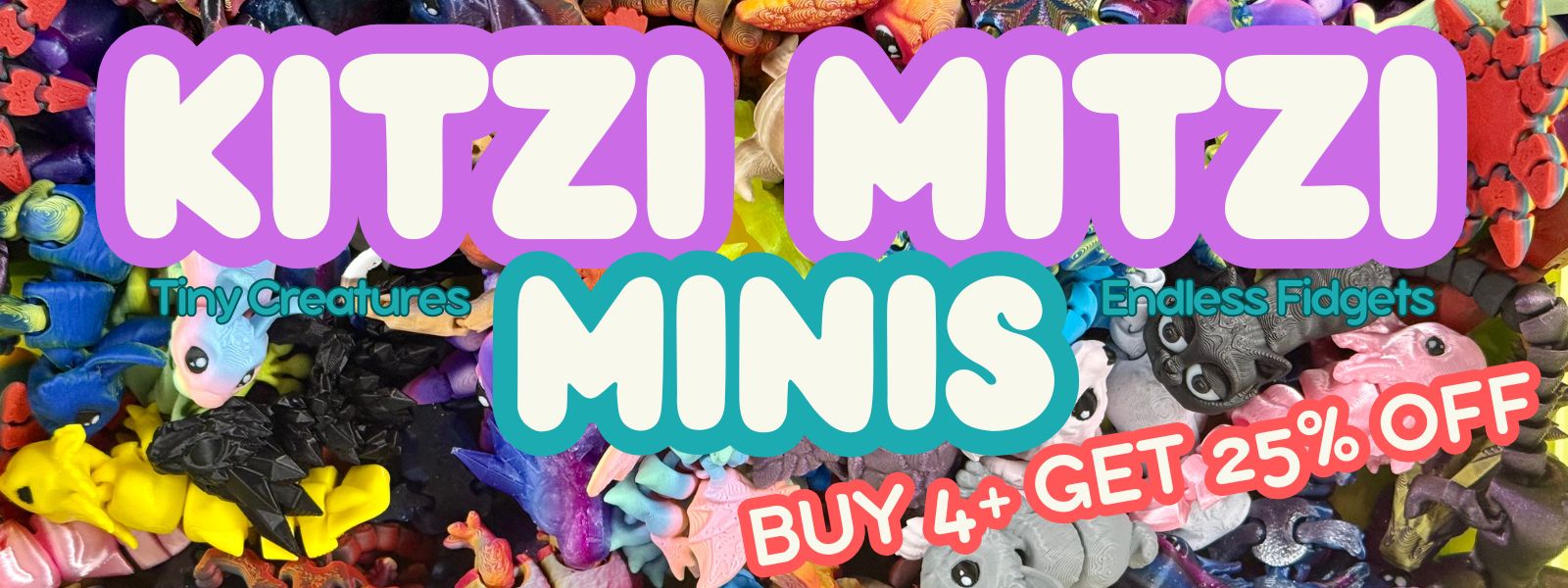 Meet the Kitzi Mitzi Minis — tiny 3D printed creatures designed to fidget, collect, and love!
