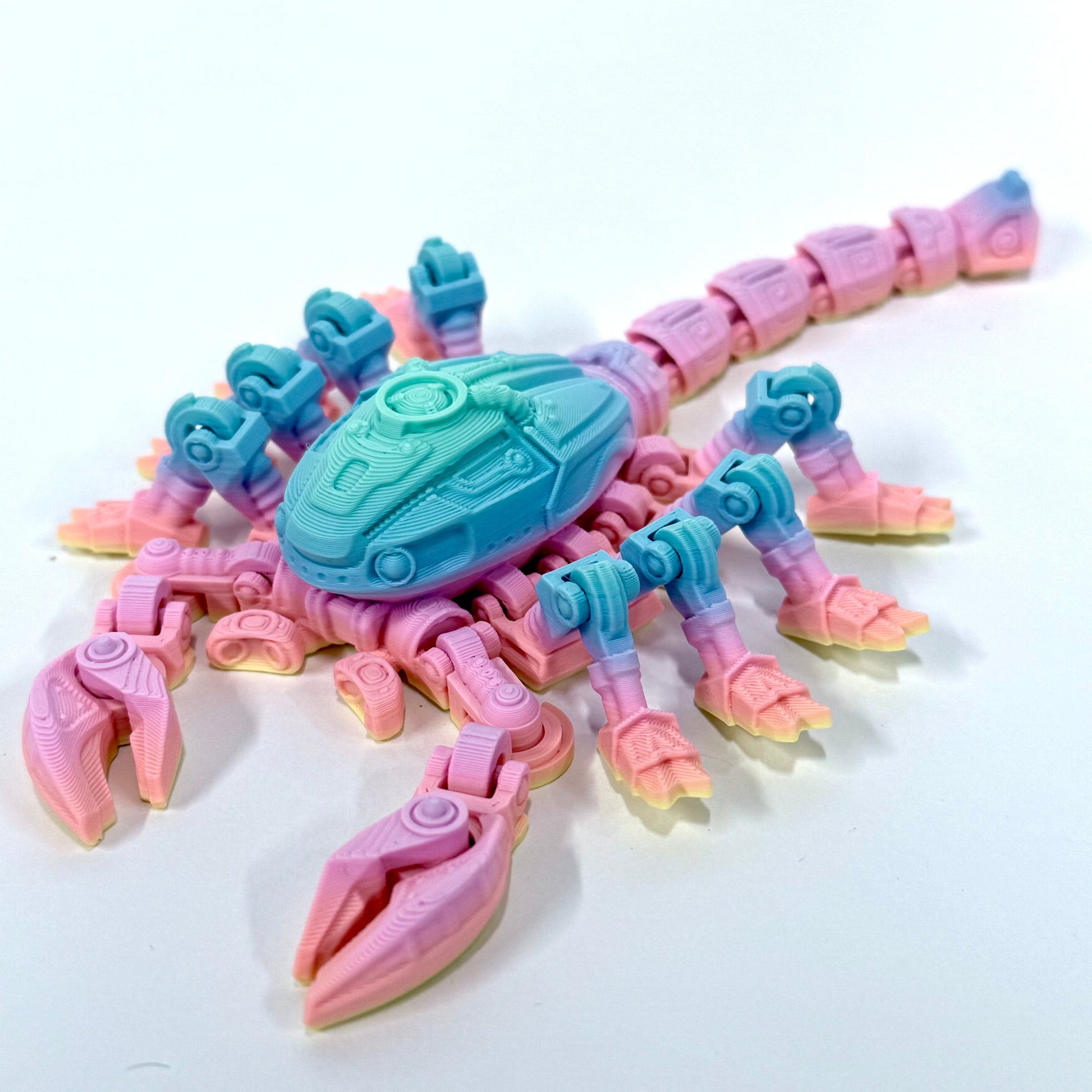 Each Cyber Scorpion showcases a striking cyber-mechanical aesthetic and is available in nine colour options, including rainbow, pastel rainbow, glow-in-the-dark, and iridescent finishes. Whether displayed on a shelf, guarding your desk, or added to your Cyber Collection, this scorpion is sure to catch attention.