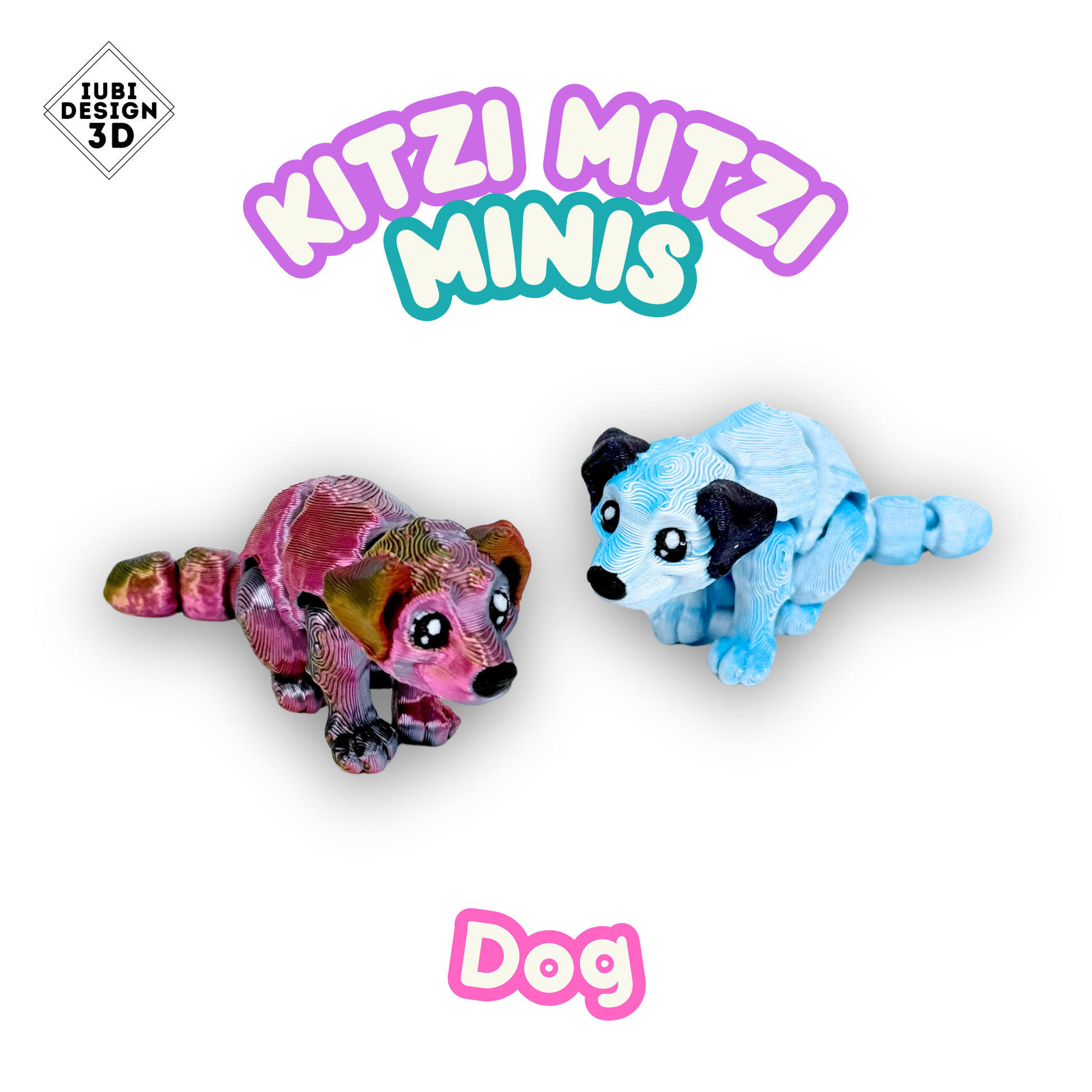 Each Kitzi Mitzi Mini is 3D printed with precision using high-quality PLA and hand-finished for a smooth, tactile feel. Whether you love pets, collectible Minis, or fidget-friendly designs, the Dog Mini is ready to bring a wagging touch of personality to your Mini family.